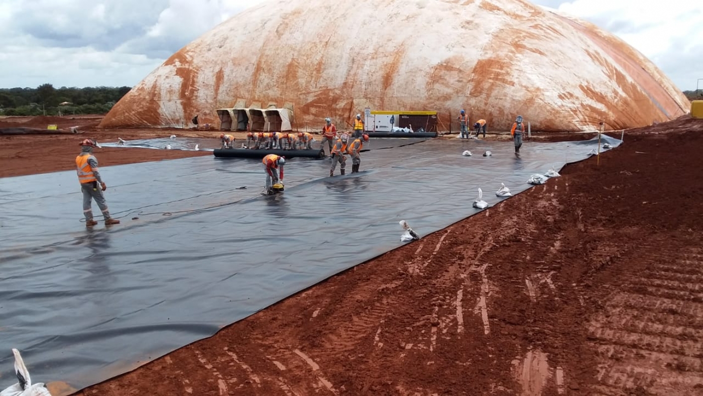 Com início em 2018 e conclusão em 2019, as obras dos aterros experimentais do Depósito de Resíduos Sólidos 1 (DRS1) foram executadas em virtude da necessidade de se avaliar as melhores soluções para fechamento do depósito de resíduos e recuperação ambiental da área. Foram executadas oito soluções distintas, com variações de materiais e camadas, com utilização de geossintéticos como geomembrana, geocomposto e geotêxtil, areia, gesso, solos argilosos e solos orgânicos, incluindo obras de acessos, instrumentação e drenagens das áreas. Em virtude do período crítico de execução (elevado índice pluviométrico do estado do Pará) e da urgência da contratante, a Construtora Nóbrega Pimenta apresentou como solução para entrega dos serviços a utilização de um galpão inflável, cobrindo uma área completa de um aterro. Com isso, os aterros foram executados de forma sucessiva durante o período de chuvas, sem interferências climáticas, concluindo as obras nos prazos definidos.
