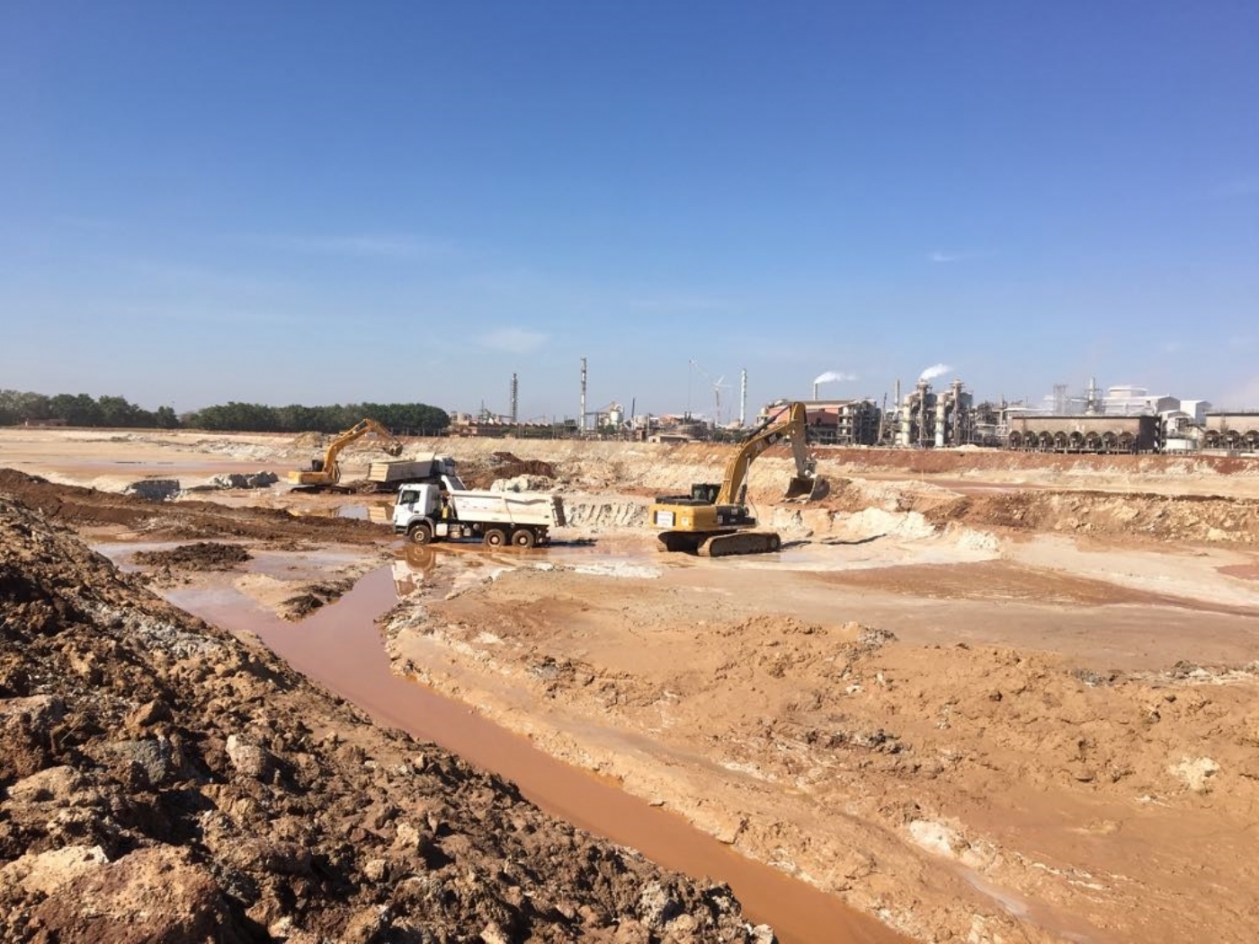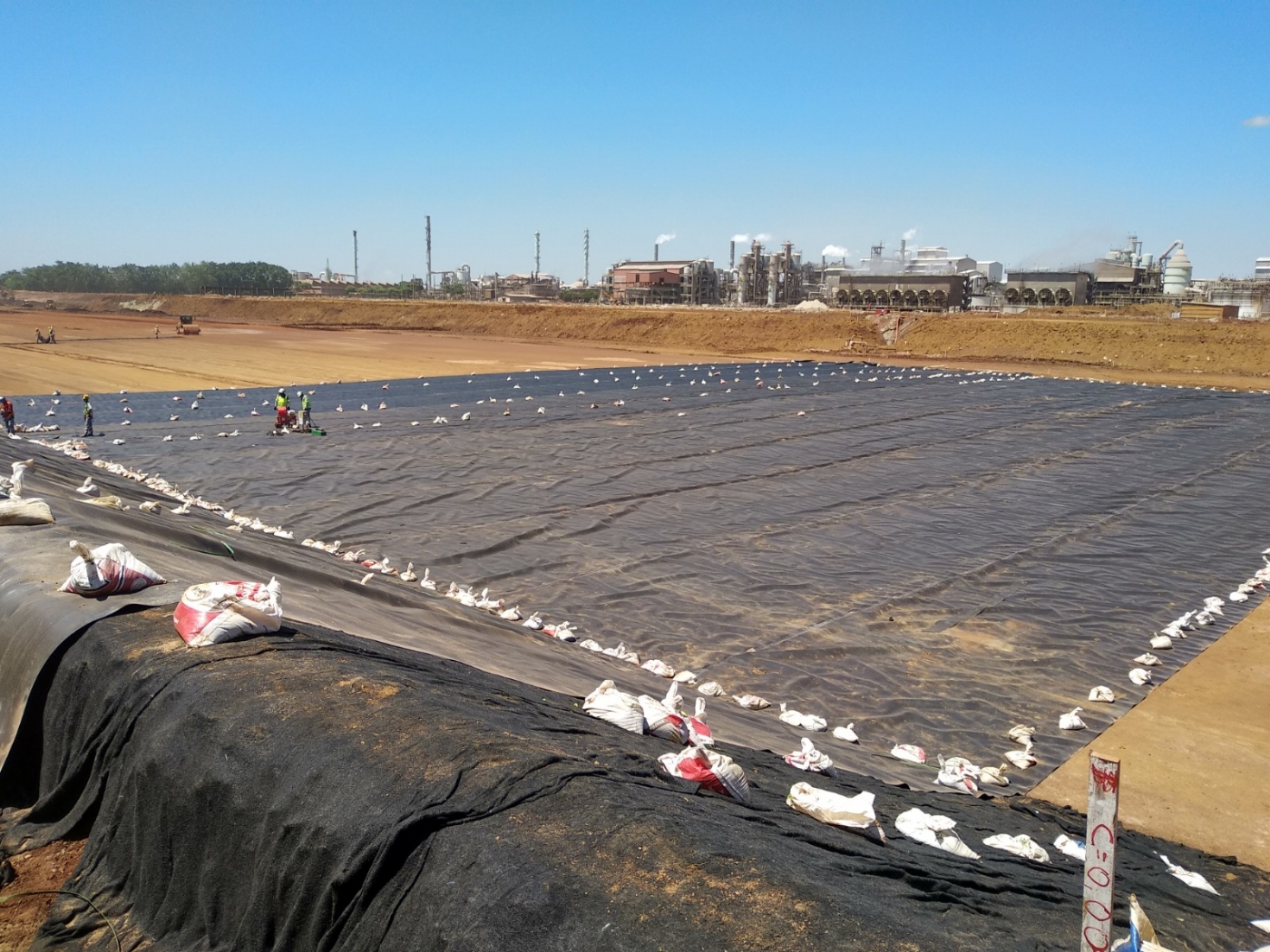 Com início em 2018 e conclusão em 2019, a impermeabilização da lagoa R consistiu em obras para desvio do fluxo normal das águas do complexo para isolamento das áreas a serem impermeabilizadas e posteriormente dragagem das águas para esvaziamento das lagoas, escavação de gesso, terraplenagem, impermeabilização e reaterro. Foram escavados mais de 300 mil m³ entre materiais contaminados e solo para conformação do fundo e taludes da lagoa, aplicados mais de 117 mil m² de geomembrana em PEAD para impermeabilização e compactados mais de 140 mil m³ de camadas de proteção sobre a geomembrana. Em algumas áreas foram aplicadas geocélulas preenchidas por concreto, permitindo a dragagem de material decantado no fundo da lagoa. Também fizeram parte do escopo os serviços complementares de drenagens, poços de monitoramento, projeto executivo detalhado, montagens elétricas e de bombas.