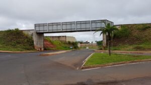 Construção do viaduto na interseção da avenida Claricinda Alves Rezende com a linha férrea da FCA, em Uberaba/MG.